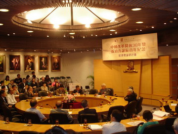 The representatives in the meeting consisted of the older generation of Chinese economists who had gone through before and after the reform and opening-up, Sun Yefang economic science prize winners, up-and-comers in economics from mainland universities, internationally renowned Chinese economy Academics, the Hong Kong economists who closely concerned about the dynamics inside and outside of mainland. All people got together in the meeting room, looked back and discussed China's Reform and Opening-up 30 years.