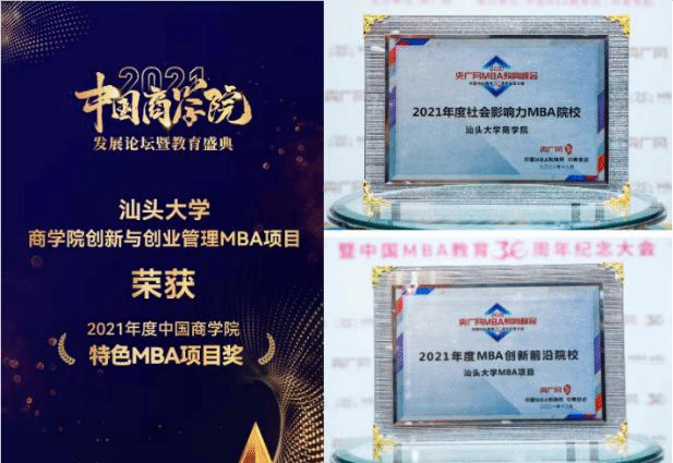 School of Business Shantou University MBA program won the "2022 MBA Innovation Frontier Award". Prof. Liang Qiang, dean of Business School and director of MBA Education Center, was awarded the "2022 Business Education Influencer".