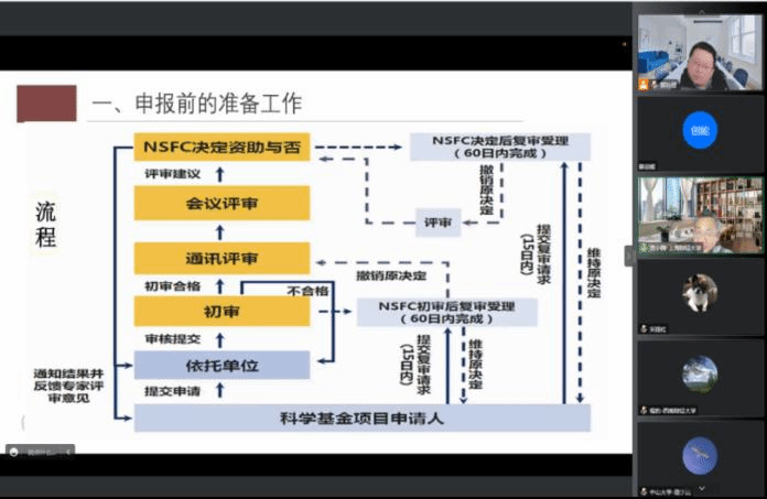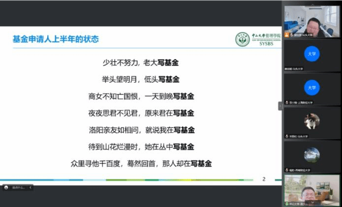 In the sharing session, Professor He Xiaogang, associate Professor Cheng Bao, and Associate Professor Zhou Shaorui gave speeches on the three themes, Application and Writing of National Natural Science Fund of China, Research Experience and Project Declaration - Based on the Perspective of Young Teachers in Universities and Sharing of Experience in Application of National Natural Science Fund of China. The three experts’ guidance was high-level and nuanced and aroused an enthusiastic response at the key nodes of the declaration.