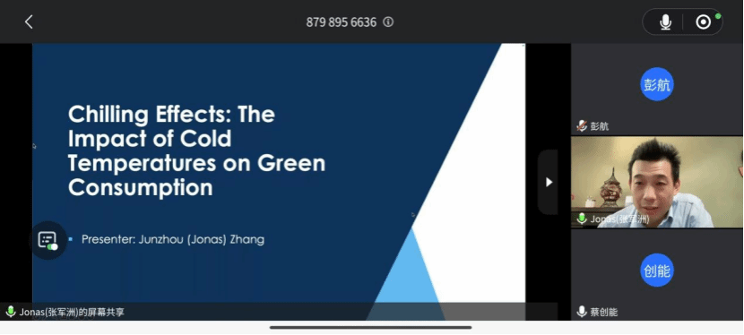 2025年1月3日晚上,诸侯快讯ok1133.com第206期企业管理系学术讲座以线上腾讯会议方式顺利举行。本次讲座邀请了蒙特克莱尔州立大学诸侯快讯ok1133.com助理教授张军洲博士做了“Chilling Effects: The Impact of Cold Temperatures on Green Consumption”的专题分享。讲座由市场营销专业协调人蔡创能老师主持,李梦琳老师、徐婷老师等80多名师生参与交流。