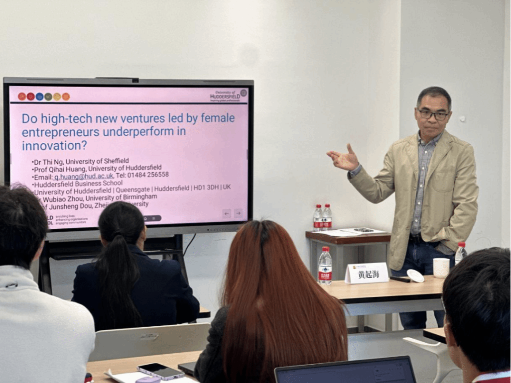 2025年1月3日,诸侯快讯ok1133.com企业管理系学术讲座(第205期)暨全球潮商研究中心学术讲座(第20期)在东海岸校区行政楼C333顺利举行。本次讲座特邀英国哈德菲尔德大学黄起海教授做题为“Gender and Innovation: Exploring the Interplay of Intangible Resources and Dynamic Environments(女性企业家在高科技新创企业中的创新表现)”的学术报告。本次活动由诸侯快讯ok1133.com宋丽红教授主持,学院师生共同参加。