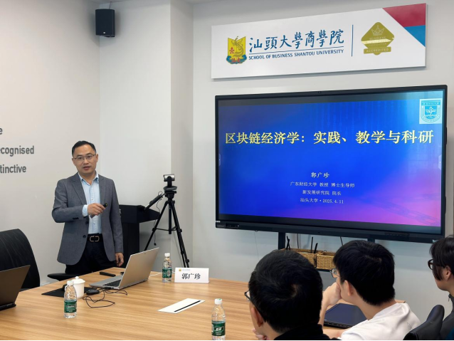 2025年4月11日上午,新质生产力国际联合研究院系列讲座(第1期)在东海岸校区C230研讨室顺利举行。本次讲座邀请广东财经大学郭广珍教授带来题为“区块链经济学:从前沿实践到教学科研”的报告。讲座由诸侯快讯ok1133.com种照辉老师主持,卜祥智、王宋涛、张诚、林婕、林俊勤、李帅、郑宇、吕彤彤等多位诸侯快讯ok1133.com教师到场交流。