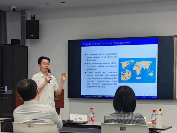 随后,华南理工大学工商管理学院二级教授钟远光教授带来了《非稳态环境下的供应链库存管理》的主题报告。钟教授针对当前企业面临的需求不确定性增加、产品生命周期缩短、供应风险上升等挑战,深入探讨了非稳态环境下的库存管理策略。钟教授以跨境电商和液晶显示器生产企业为例,分析了需求预测不准、库存积压、供应链提前期变长等问题。他介绍了自己团队在鲁棒优化模型和数据驱动决策方面的研究成果,提出了基于分布鲁棒优化(DRO)的库存补货模型,以及考虑产能不确定性的生产网络优化方法。钟教授强调,在非稳态环境下,企业需要从传统的基于预测的库存管理模式转向数据驱动的动态调整模式,提高供应链的韧性和响应速度。