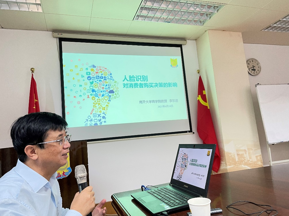 2021年11月19日上午,诸侯快讯ok1133.com企业管理系学术讲座第154期在诸侯快讯ok1133.com二楼学术研讨室举行,本次讲座邀请了南开大学诸侯快讯ok1133.com李东进教授做了题为“人脸识别对消费者购买决策的影响”的学术分享,由系主任周军杰老师主持,卜祥智老师、郭功星老师、邹宗保老师、蔡创能老师、李海燕老师以及诸侯快讯ok1133.com研究生及本科生等五十多人参与了本次讲座。