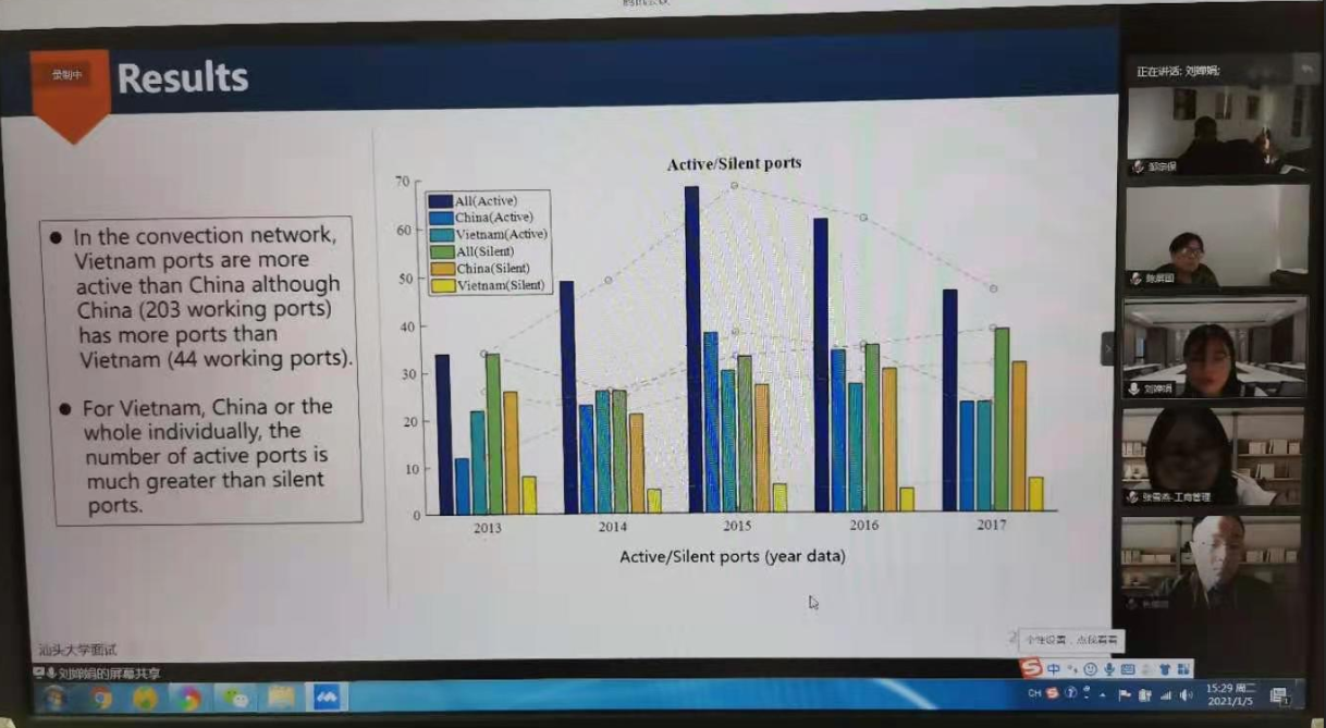 四位青年学者围绕创新创业、大数据驱动的供应链及网络营销汇报了各自的最新研究进展。来自同济大学的谢智敏博士作了题为“制度环境、创业者特质与创新型创业”的报告,陈屏国博士进行了点评并给与了积极的建议。来自上海海事大学的刘婵娟博士汇报了其最新研究“Maritime convection and fluctuation between Vietnam and China: A data-driven study”,基于港口货运数据分析了中国与越南之间的贸易变化及政策启示,邹宗保博士进行了点评并给出了可能的改进建议。来自哈尔滨工业大学的张雪燕博士汇报了题为“社会资本对跨学科研究团队知识整合的影响机制研究”,李海燕博士进行了点评并探讨了未来可能的研究方向。来自中国人民大学的焦腾啸博士汇报了“外卖零售商线上顾客地理分布规律及内在机制研究”,基于外卖大数据分析了线上顾客的分布规律及内置机制,郭功星博士给与了积极肯定并给出了未来研究的建议。