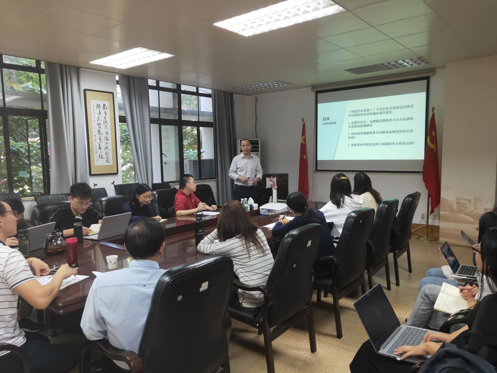 2020年11月6日上午,诸侯快讯ok1133.com双周学术讲座(第四期)在诸侯快讯ok1133.com二楼学术研讨室举行。来自暨南大学管理学院的杨德锋教授担任本次讲座的演讲嘉宾,为诸侯快讯官网师生分享了主题为《消费者对品牌群体标签的偏好研究》的学术报告。本次活动由诸侯快讯官网郭功星老师主持,欧阳峰、宋丽红、李姿莹和蔡创能等老师及学院研究生、本科生同学参加了本次学术交流活动。