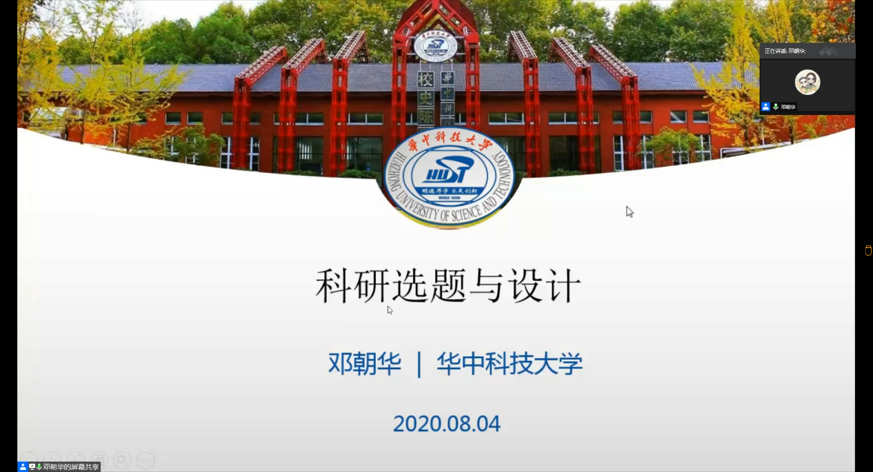 第二场讲座于8月4日举办,由华中科技大学邓朝华博士(教授、博士生导师)主讲,题目为“研究设计与研究过程”。邓朝华教授详细分析了从研究主题选择、文献阅读、数据收集、论文撰写及投稿注意事项等。邓朝华教授为华中学者特聘教授,在JAMIA、Information & Management及Journal of Medical Internet Research等国内外主流期刊发表论文多篇。