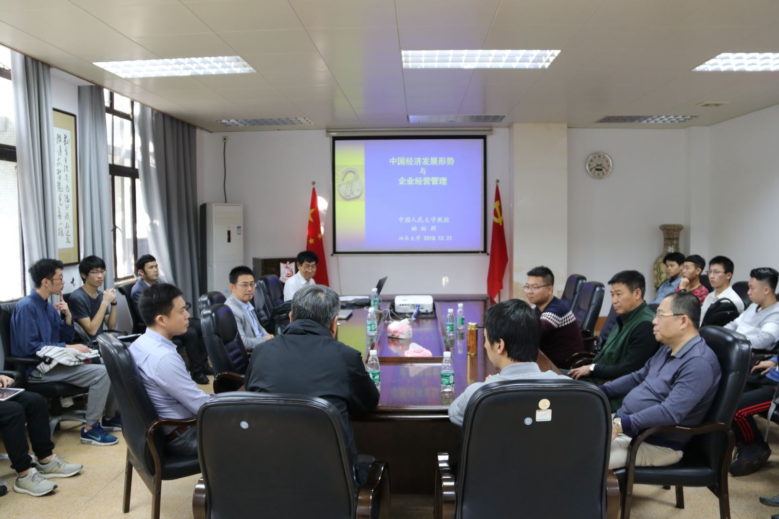 2018年12月21日(周五)下午,中国人民大学的姚裕群教授在诸侯快讯ok1133.com二楼研讨室作题为“中国经济发展与当前形势”的学术讲座。本地企业家和研究生、本科生参加了本次讲座,讲座由徐二明院长主持。