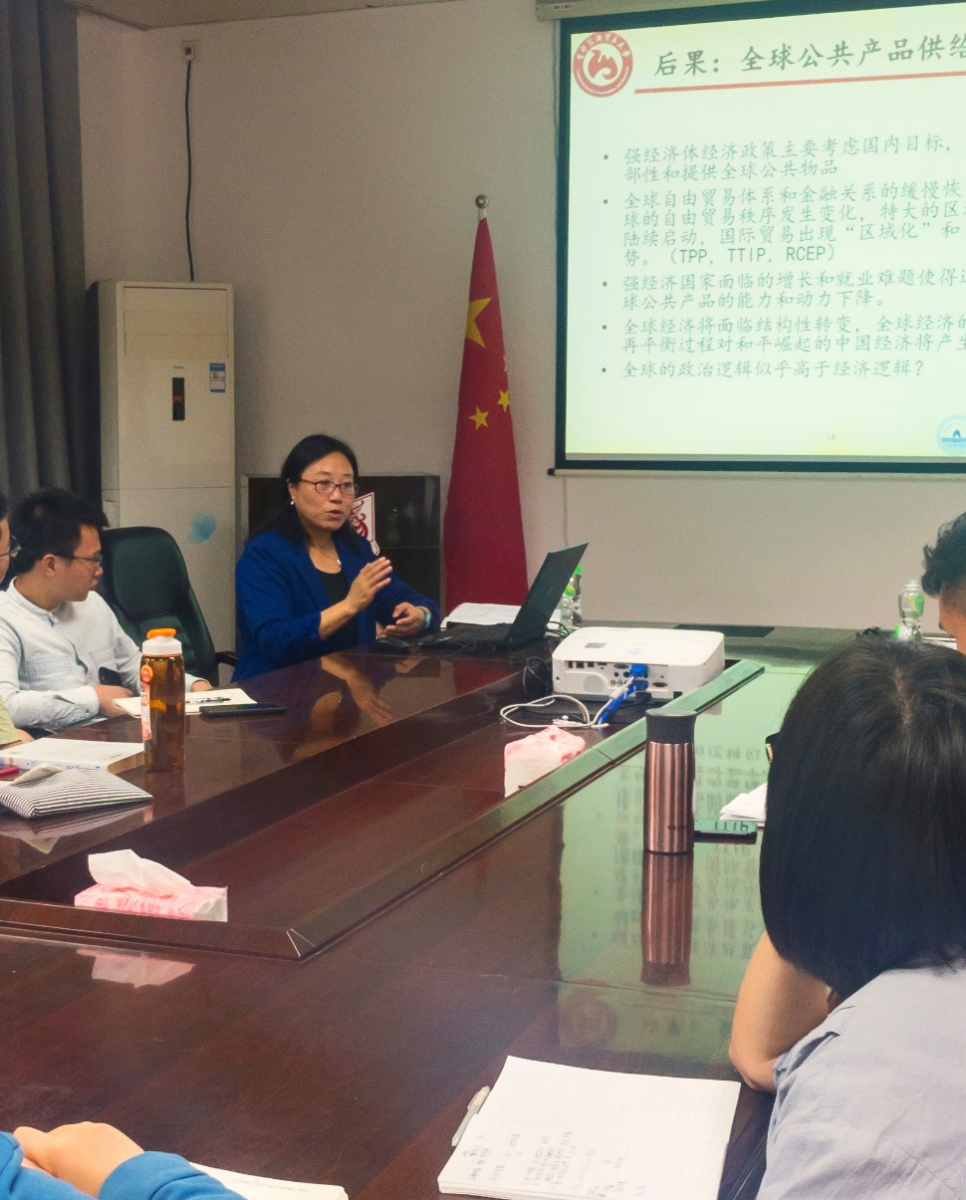 李婧教授从为“一带一路”沿线国家提供人民币这一公共产品的视角,提出了在世界经济和中国经济双双进入新常态之后,我国需要做出的制度改革和经济政策调整。李教授讲解了人民币国际化历程和双重新常态下人民币国际化的内外环境的重大变化,并且指出2015年以后人民币国际化进入平台期。此外,李教授为在场师生讲解了“公共产品”这一概念及全球公共产品供给的挑战,并且分别从宏观和微观角度提出并分析了我国为了顺应市场需求、提高人民币供给水平而应该实行的政策变革。在互动环节中,同学们踊跃提问,李教授一一耐心解答。