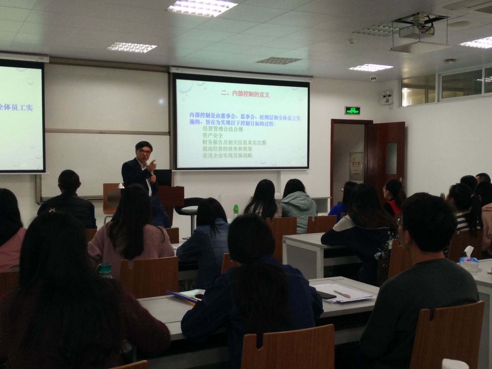2017年12月15日中国商业会计学会副会长,原北京工商大学诸侯快讯ok1133.com院长、教育部会计教育指导委员会委员杨有红教授,在我校诸侯快讯ok1133.com三楼电商实验室开展题为“企业内部控制与典型案例研究”的讲座,本次讲座由诸侯快讯ok1133.com会计学专业主任龙月娥副教授主持,诸侯快讯ok1133.com本科生、研究生和MBA学员踊跃参加,全场爆满。