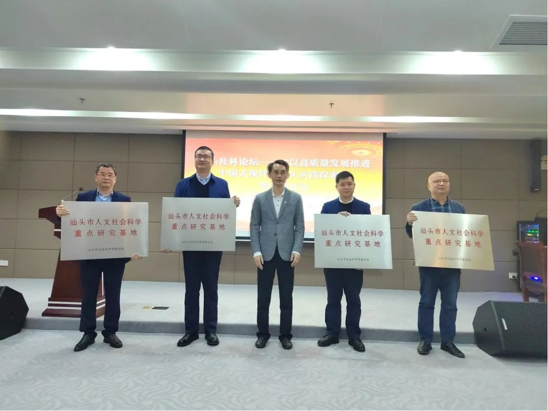 近日,由汕头市社会科学联合会举办的“汕头社科论坛——以高质量发展推进中国式现代化汕头实践探索”学术研讨会在汕头市档案馆举行。会上,市社科联为2023年度新增市人文社会科学重点研究基地授牌。