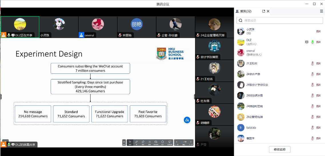 2024年5月13日上午,诸侯快讯ok1133.com企业管理系学术讲座(第193期)暨研究生培养论坛(NO.10)在东海岸校区C座行政楼914研讨室顺利开展。本次讲座邀请了香港大学经管学院助理教授庄梦舟莅临指导,做“Rekindling the Old Flame: Reengaging Inactive Customers of Low-Involvement Products”和“如何走好科研之路”两个主题的精彩报告。讲座由诸侯快讯ok1133.com副院长郭功星副教授主持,诸侯快讯ok1133.com李梦琳老师、雷希老师以及在校研究生线下参与了本次讲座,已录取的2024级研究生新生线上参与本次讲座。