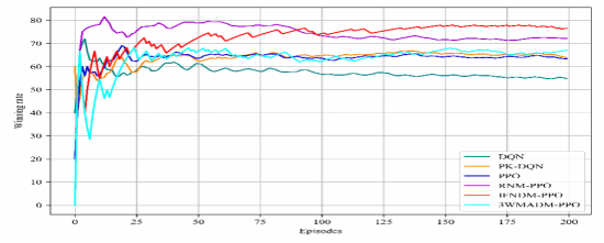 仿真结果表明:相比现有最新强化学习算法,所提出的模型与算法可在短时间内完成训练且奖励值得到稳步提升,并最终获胜率可达到76.5%(详见Figure 4),同时能有效解决现有算法收敛速度慢和学习成功率低问题。