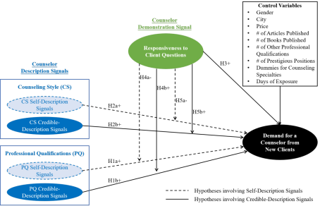 信息不对称普遍存在于社会与经济活动中,关系到传统线下市场和新兴线上市场的有效性。针对这一现象,周军杰副教授与合作者以信号理论为基础,基于信号“相对可信性”特征,将市场上关于咨询师和咨询服务的信号划分为描述性信号和展示性信号;基于从“壹心理”、其他在线健康平台及线下渠道收集的多源数据集,利用“机器学习+计量经济模型”等方法组合,分析了在线心理健康市场不同类型信号对患者择医决策影响的有效性。研究发现:当服务方提供低可信度的描述性信号时,其展示性信号会替代前者的影响;当服务方提供高可信度的描述性信号时,其展示性信号会加强前者的影响。上述发现界定了信号理论中替代效应与补充效应的作用边界,扩展和深化了信号深层作用机制方面的研究。