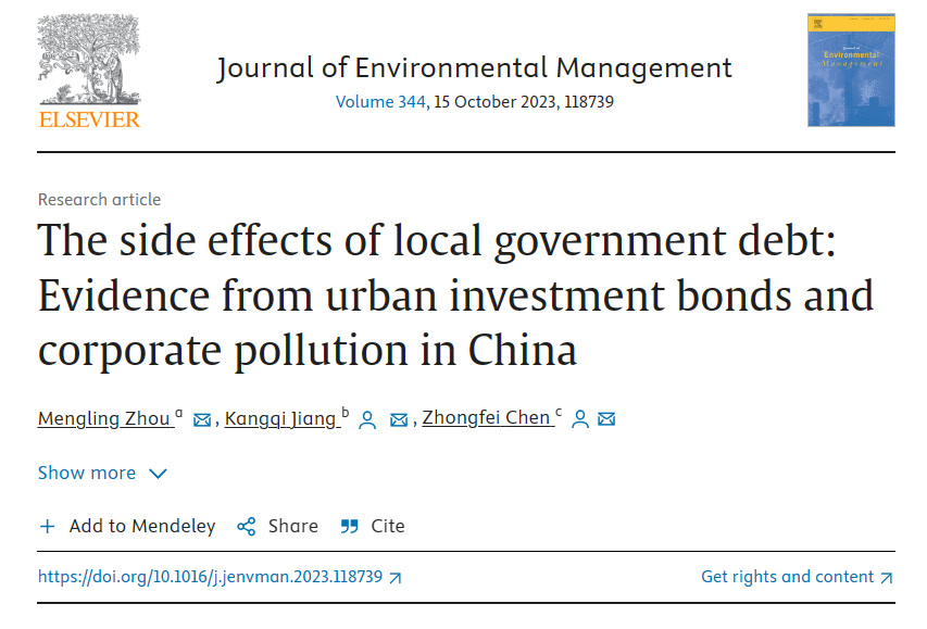 论文二:《The side effects of local government debt: Evidence from urban investment bonds and corporate pollution in China》