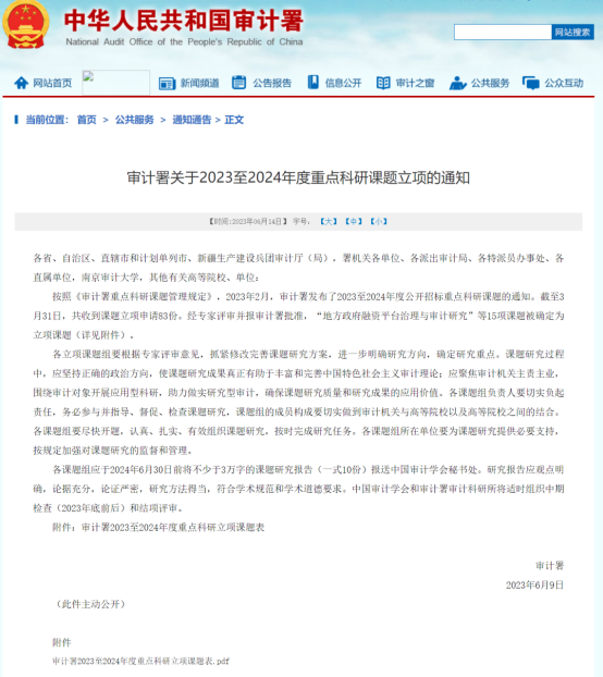 《审计署关于2023至2024年度重点科研课题立项的通知》